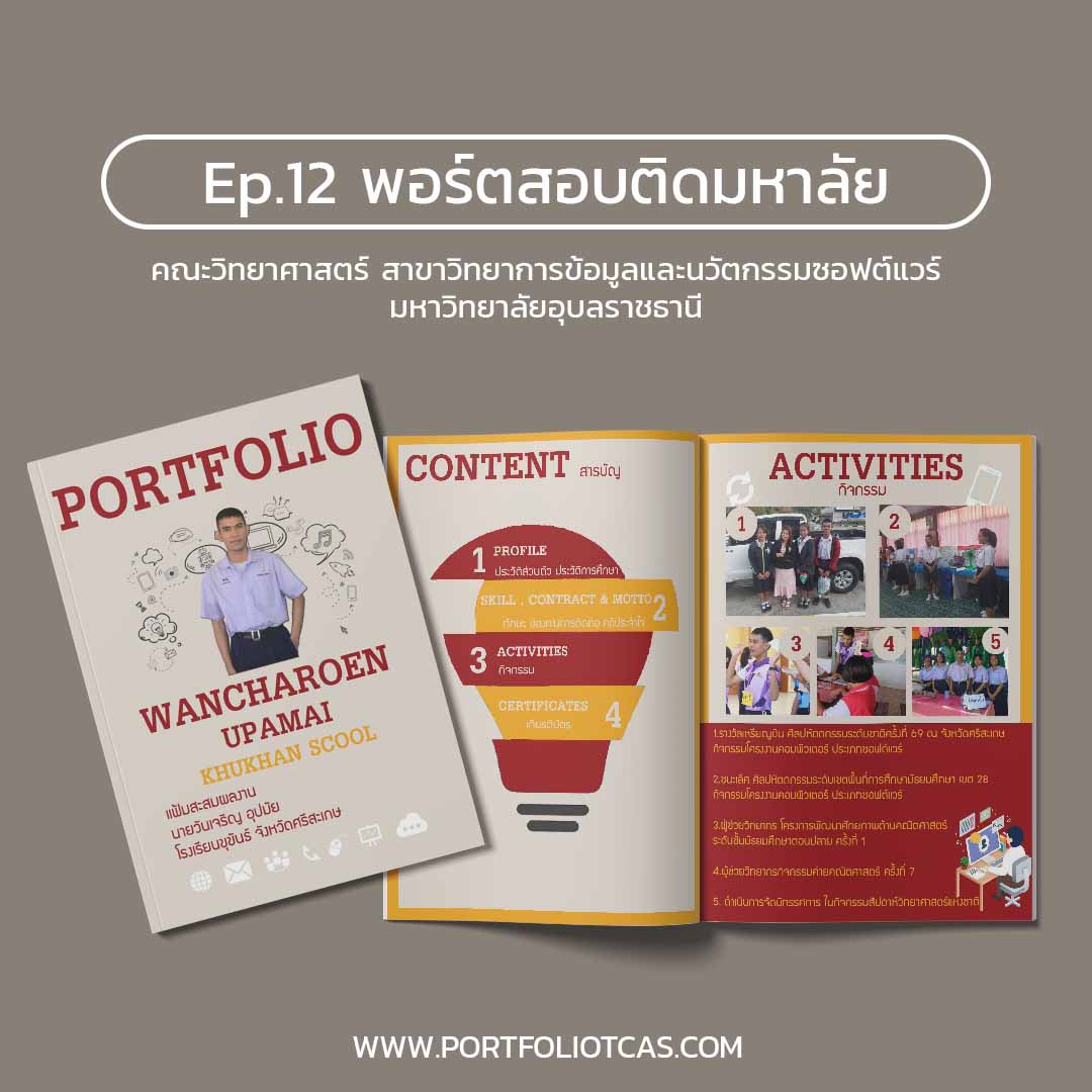 ตัวอย่างพอร์ตโฟลิโอหรือแฟ้มสะสมผลงาน (Portfolio) ที่ใช้ในการสมัครสอบมหาลัยในระบบ TCAS ซึ่งพอร์ตโฟลิโอเล่มที่นำมาเผยแพร่นี้ คือพอร์ตโฟลิโอที่ได้ผ่านเข้ารอบสัมภาษณ์ของแต่ละมหาวิทยาลัย พี่ๆแอดมิน เพจ คนทำพอร์ต ได้รวบรวมมาจากกิจกรรมประกวดพอร์ตโฟลิโอ ปี 2563 ให้น้องๆ มัธยม Dek TCAS เพื่อศึกษาเป็นแนวทางวิธีทำพอร์ตโฟลิโอ การสอบสัมภาษณ์พอร์ตโฟลิโอ แนวทางการเตรียมตัวทำพอร์ตโฟลิโอ การเก็บรวบรวมกิจกรรม เกียรติบัตรและผลงานต่างๆ ในการทำพอร์ตโฟลิโอ