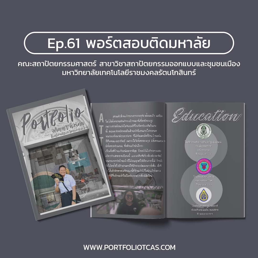 ตัวอย่างพอร์ตโฟลิโอหรือแฟ้มสะสมผลงาน (Portfolio) ที่ใช้ในการสมัครสอบมหาลัยในระบบ TCAS ซึ่งพอร์ตโฟลิโอเล่มที่นำมาเผยแพร่นี้ คือพอร์ตโฟลิโอที่ได้ผ่านเข้ารอบสัมภาษณ์ของแต่ละมหาวิทยาลัย พี่ๆแอดมิน เพจ คนทำพอร์ต ได้รวบรวมมาจากกิจกรรมประกวดพอร์ตโฟลิโอ ปี 2563 ให้น้องๆ มัธยม Dek TCAS เพื่อศึกษาเป็นแนวทางวิธีทำพอร์ตโฟลิโอ การสอบสัมภาษณ์พอร์ตโฟลิโอ แนวทางการเตรียมตัวทำพอร์ตโฟลิโอ การเก็บรวบรวมกิจกรรม เกียรติบัตรและผลงานต่างๆ ในการทำพอร์ตโฟลิโอ